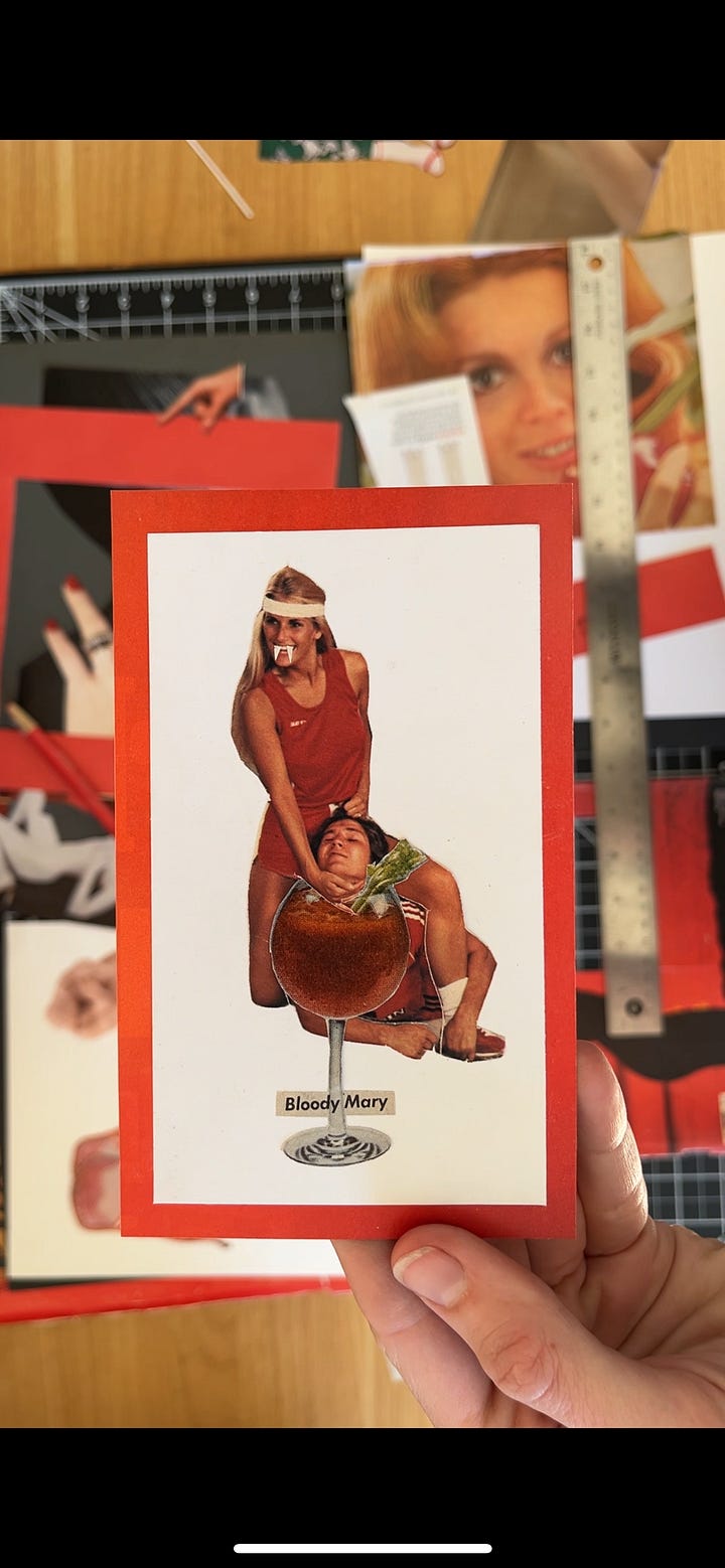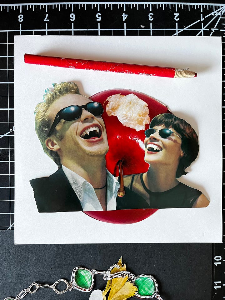 Speaking of unquenchable thirst, I dusted off the old cutting mat for collages and made a bunch of vampire-themed pieces to celebrate Halloween:
